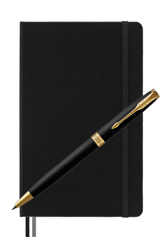Parker Sonnet Matte Black Gt Moleskine от официального дилера Parker в Коломне. Вы можете дополнительно заказать гравировку, которая подчеркнет Вашу оригинальность и придаст памятность статусному подарку. Все ручки Паркер поставляются в фирменном футляре.